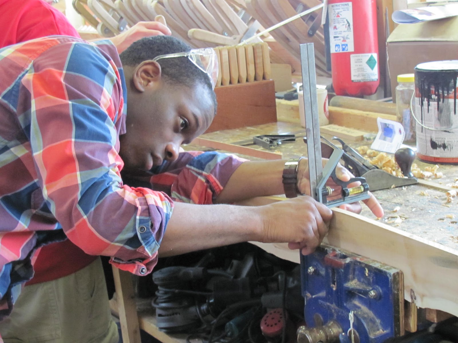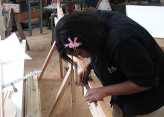 Brigith wore safety glasses and protective ear wear because she was cold. Brian assisted on the bandsaw with Chico and Brigith. Rashid accomplished a lot today.